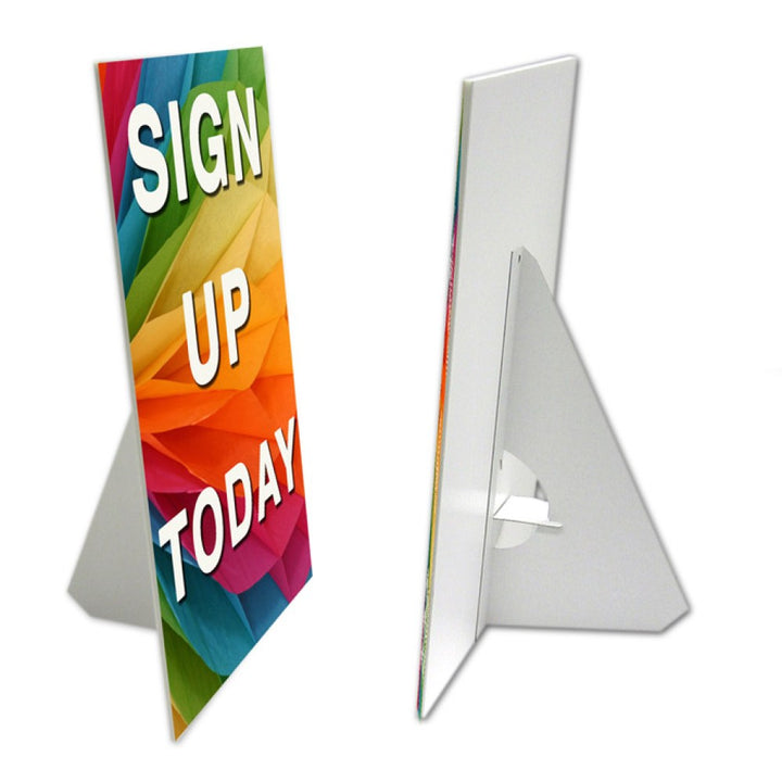 Pair your foamcore signage with a sleek, lightweight floor-standing metal easel or a cardboard tabletop easel for optimal display.